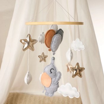 Wooden Baby Crib Mobile with Soft Felt Rattles
