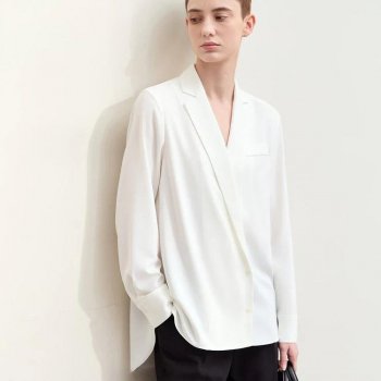 Elegant Winter Long-Sleeve Blazer Collar Loose Chiffon Shirt
