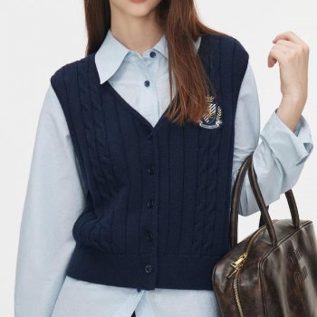 Wool Sleeveless V-Neck Sweater Vest for Women – Navy Blue College Style