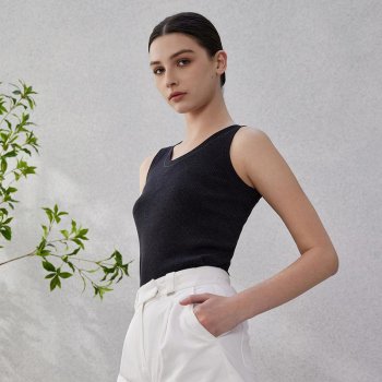 Silk Wool Knitted Vest Top for Women – Sleeveless Casual T-Shirt