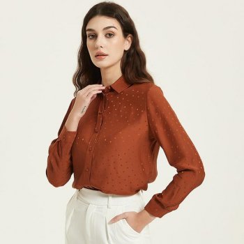 Women’s 100% Mulberry Silk Polka Dot Blouse with Turn-Down Collar