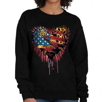 Flag Heart Crewneck Sweatshirt – Animal Print Women’s Sweatshirt – Printed Sweatshirt