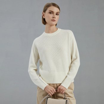 100% Merino Wool Crew Neck Pullover Sweater for Women