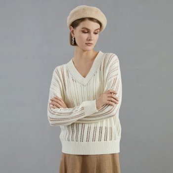 Luxury Women’s 100% Wool V-Neck Thick Loose Sweater for Winter