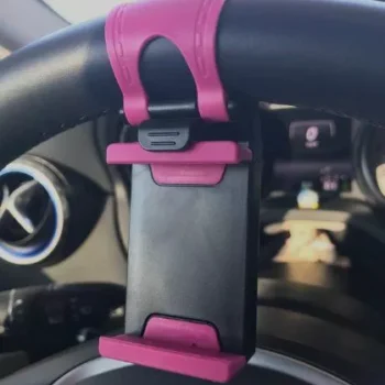 This marks my second acquisition of a phone holder of this style, with the first succumbing to damage caused by my energetic grandson after several years of use. This device effortlessly affixes to my steering wheel, providing a convenient hands-free solution for keeping my phone in sight while navigating the extensive roads of my county. It ensures my Waze directions and alerts remain prominently displayed, addressing concerns like traffic congestion or upcoming accidents. Although snacking while driving is ill-advised, I appreciate the ability to securely store my phone in the holder while I pull over safely to check for nearby snack options. Moreover, I find reassurance in the fact that my phone remains securely in place. Given its minimal footprint on my steering wheel, I'm fully satisfied with its performance and would readily purchase another if needed.